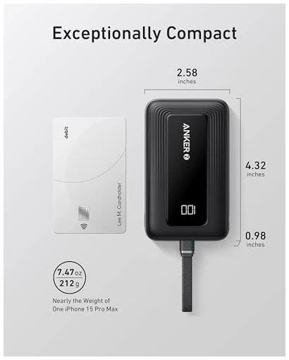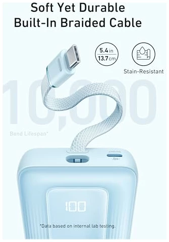Durabilité Exceptionnelle – Le câble USB-C intégré de 13,7 cm est conçu pour résister à l’usure quotidienne, supportant plus de 10 000 pliages selon les tests réalisés par Anker. Cette robustesse en fait un compagnon fiable pour une utilisation prolongée, peu importe où vous vous trouvez.