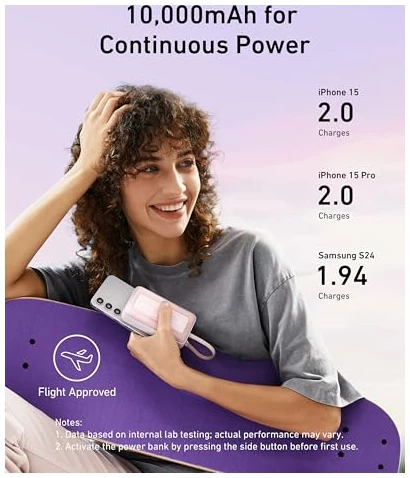 Capacité Compacte et Puissante – Avec une capacité de 10 000 mAh, ce PowerBank est suffisamment puissant pour recharger entièrement un iPhone 15 deux fois ou un Samsung S24 presque deux fois (1,94 fois). Son format compact en fait un choix parfait pour ceux qui ont besoin d’une solution portable sans sacrifier la puissance de recharge.