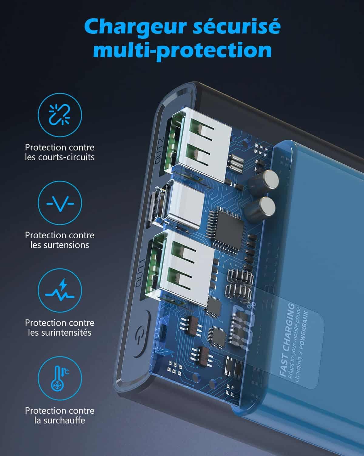 【Vaste compatibilité】power bank s’adapte à tous les appareils, des plus grands comme les iPads aux plus petits comme les AirPods. Plus un mode de charge lente automatiquement adapté, les petits appareils peuvent également bénéficier d’une alimentation optimisée sans affecter la santé de la batterie.