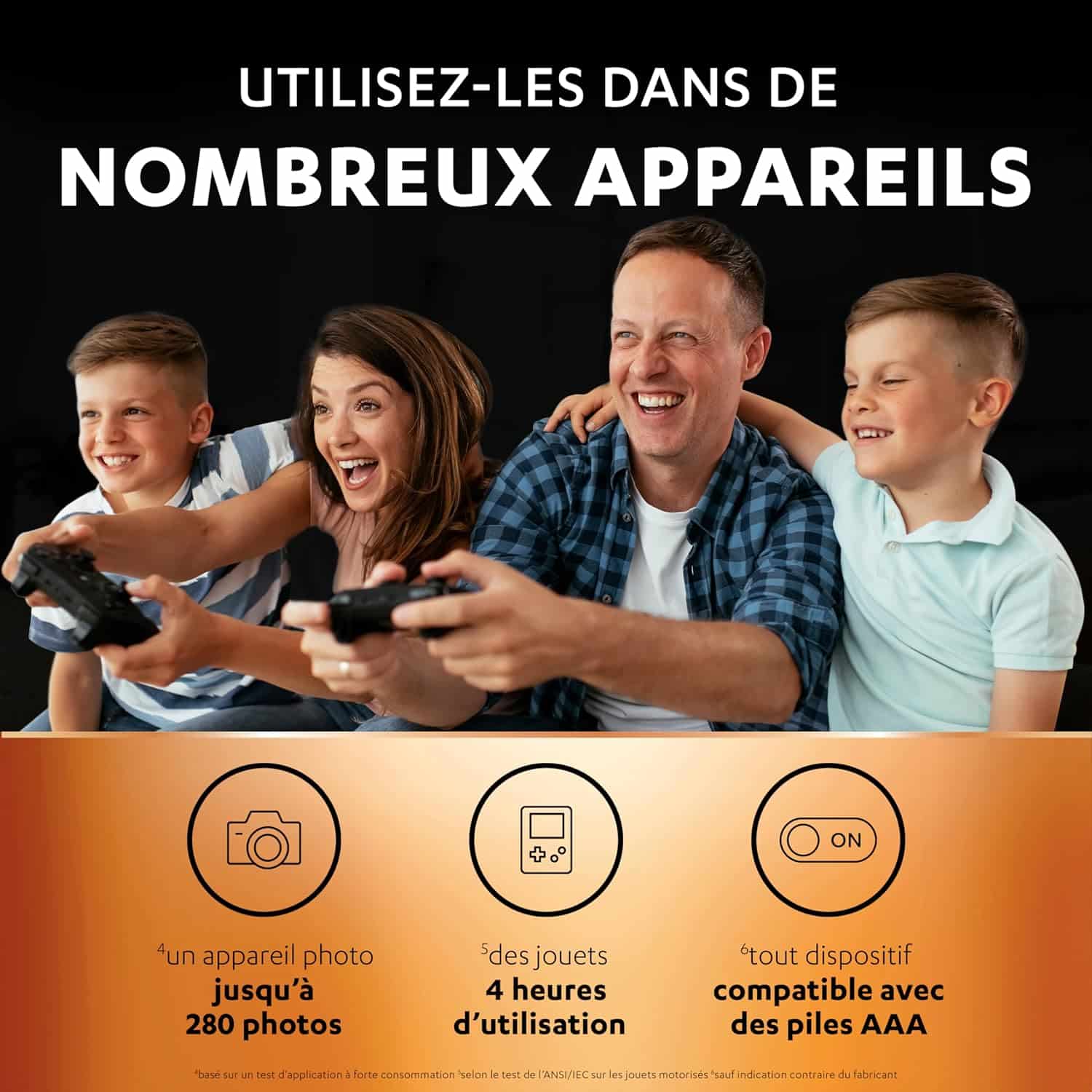 PROFITEZ DE NOMBREUSES HEURES D’UTILISATION SUR VOS APPAREILS ÉNERGIVORES : Nos piles peuvent être rechargées des centaines de fois et offrent une autonomie de plusieurs heures aux manettes sans fil, aux jouets et aux appareils photo numériques compatibles avec les piles AAA selon les recommandations des fabricants.