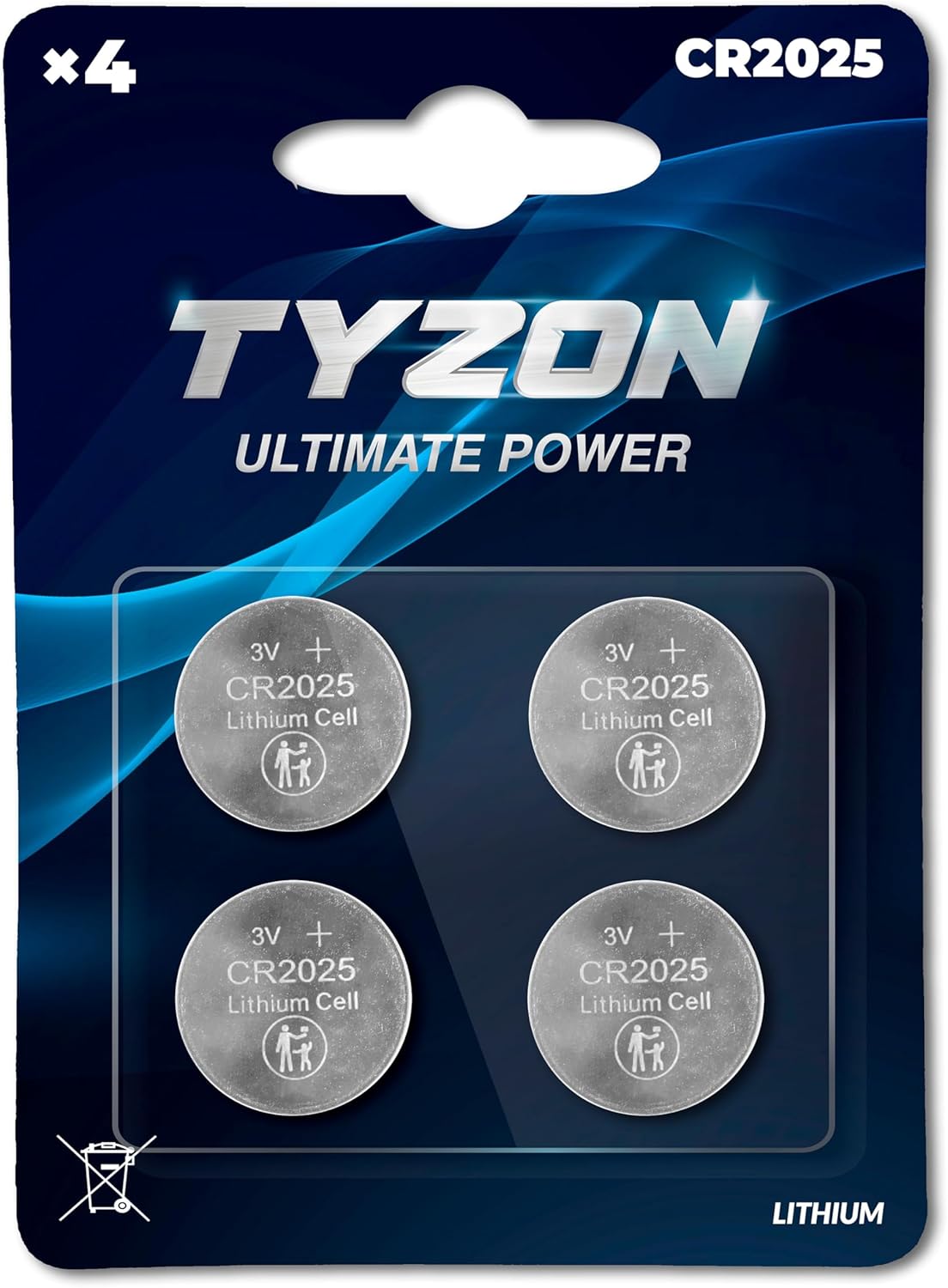 Durabilité Exceptionnelle : Les piles Tyzon CR2025 garantissent une longue durée de vie, même avec une utilisation fréquente.