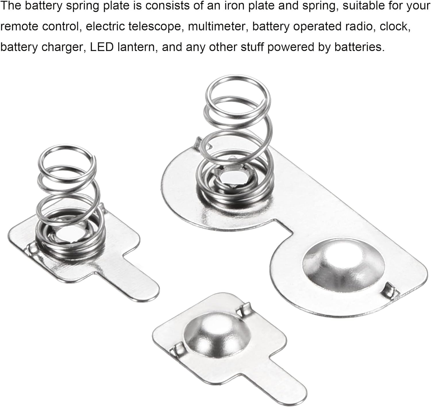 La plaque de ressort de la batterie se compose d’une feuille de fer et d’un printemps, adaptée à votre télécommande, télescope électrique, multimètre, radio à piles, horloge, chargeur de batterie, lanterne LED et tout autre objet alimenté par des piles.